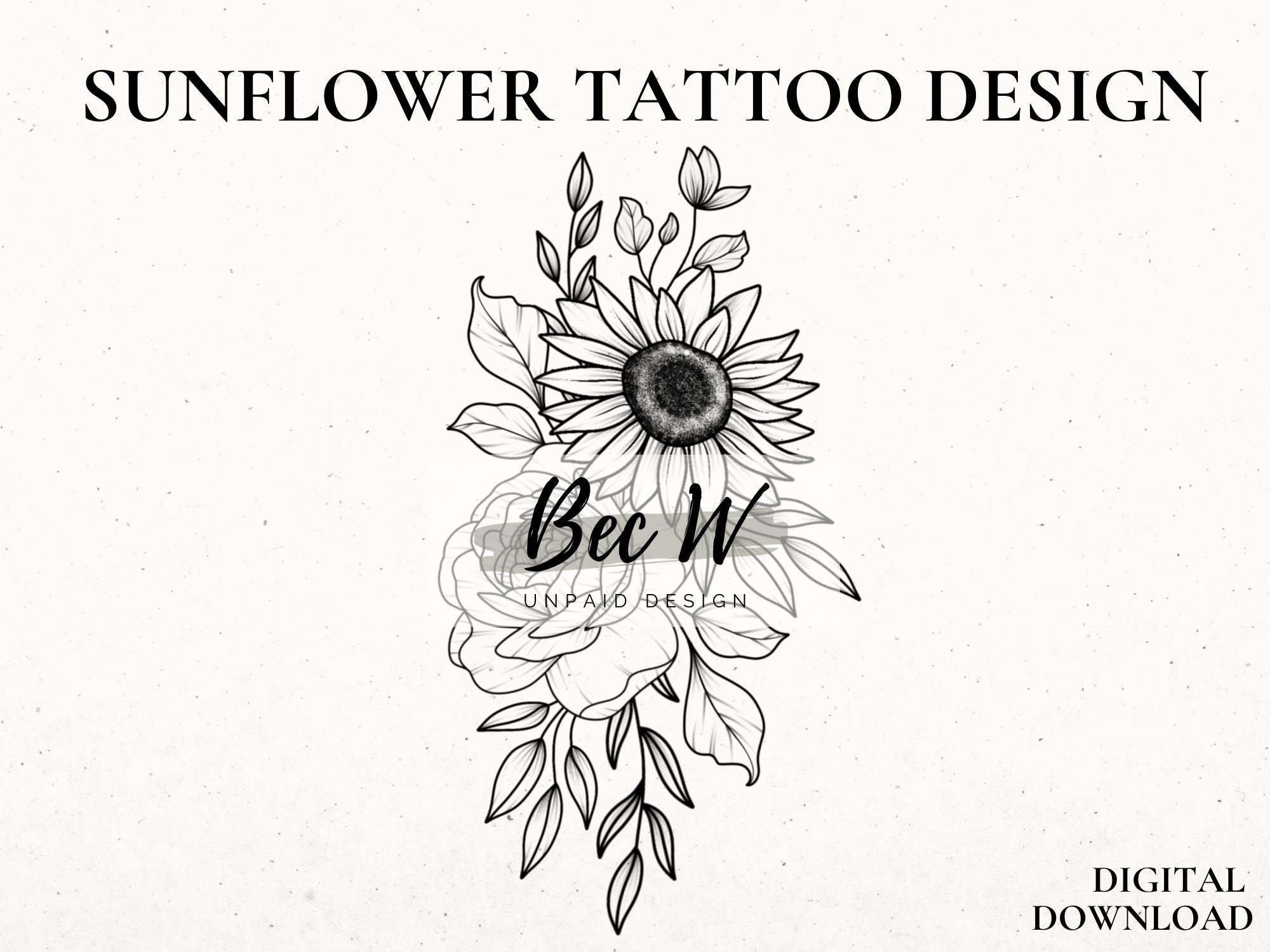 Sunflower And Peony Tattoo Design Download Digital Download Etsy Uk